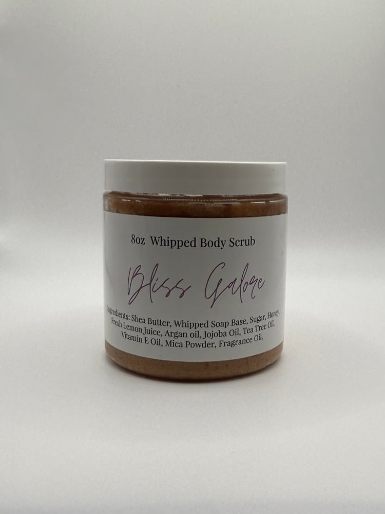 Ingredients: Sugar, Shea Butter, Whipped Soap Base, Honey, Lemon juice, Argan oil, Jojoba oil, Grapeseed oil, Vitamin E oil, Tea Tree oil, Mica Powder, Scented Oil.